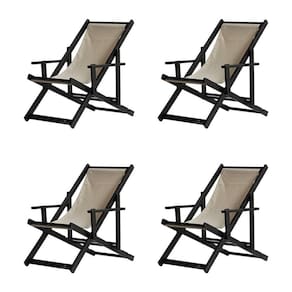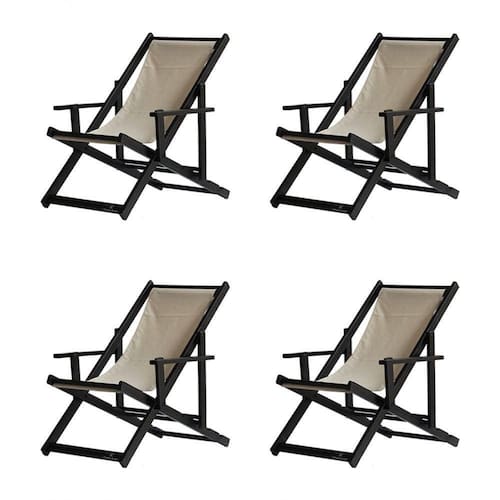 Kit 4 Espreguiçadeiras Dobrável Black Cb-bege 4 ESPREGUIÇADEIRAS ENVERNIZADAS BLACK C/BSabe aquele final de tarde que você tanto espera para tirar um descanso merecido? Ou aquela viagem para a praia programada a meses com a família? Pois é, nossas cadeiras espreguiçadeira serve exatamente para esses momentos, com várias opções de cores, os tecidos além de charmosos são hidro-repelentes e se adequam a qualquer ambiente, facilmente removíveis para higienização.Estrutura 100% de madeira maciça e verniz especial, que garante sua qualidade e durabilidade, a espreguiçadeira é totalmente dobrável e reclinável (4 posições de ângulo), com descanso para braço, sendo possível montar invertida sem o encosto de braço, perfeita para seu lazer em todos os ambientes, seja ele externo ou interno, esse é o item que definitivamente não pode faltar na vida de quem de fato, quer aproveitar bons momentos! FICHA TÉCNICA DO PRODUTO:04 Níveis de Regulagem de Altura;Tecido Reforçado;Fabricada em Madeira Maciça Pinus;Peso aproximado: 7,5 Kg;Suporta aproximadamente 120 kg;Cor da Madeira: Preta Dimensões aproximadas do Produto:Altura 1: 69 cm;Altura 2: 82 cm;Altura 3: 91 cm;Altura 4: 100 cm;Profundidade: 105 cm. Dimensão aproximada total:Comprimento: 135 cm;Largura: 66 cm; Informações Adicionais:Garantia: 90 dias contra defeitos de fabricação.Acompanha 4 cadeiras Obs. A cor pode variar da foto conforme a tonalidade da madeira e iluminação.. !! Marca: Brasil Móveis
