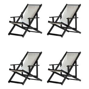 Kit 4 Espreguiçadeiras Dobrável Black Cb-branco 4 ESPREGUIÇADEIRAS ENVERNIZADAS BLACK C/BSabe aquele final de tarde que você tanto espera para tirar um descanso merecido? Ou aquela viagem para a praia programada a meses com a família? Pois é, nossas cadeiras espreguiçadeira serve exatamente para esses momentos, com várias opções de cores, os tecidos além de charmosos são hidro-repelentes e se adequam a qualquer ambiente, facilmente removíveis para higienização.Estrutura 100% de madeira maciça e verniz especial, que garante sua qualidade e durabilidade, a espreguiçadeira é totalmente dobrável e reclinável (4 posições de ângulo), com descanso para braço, sendo possível montar invertida sem o encosto de braço, perfeita para seu lazer em todos os ambientes, seja ele externo ou interno, esse é o item que definitivamente não pode faltar na vida de quem de fato, quer aproveitar bons momentos! FICHA TÉCNICA DO PRODUTO:04 Níveis de Regulagem de Altura;Tecido Reforçado;Fabricada em Madeira Maciça Pinus;Peso aproximado: 7,5 Kg;Suporta aproximadamente 120 kg;Cor da Madeira: Preta Dimensões aproximadas do Produto:Altura 1: 69 cm;Altura 2: 82 cm;Altura 3: 91 cm;Altura 4: 100 cm;Profundidade: 105 cm. Dimensão aproximada total:Comprimento: 135 cm;Largura: 66 cm; Informações Adicionais:Garantia: 90 dias contra defeitos de fabricação.Acompanha 4 cadeiras Obs. A cor pode variar da foto conforme a tonalidade da madeira e iluminação.. !! Marca: Brasil Móveis
