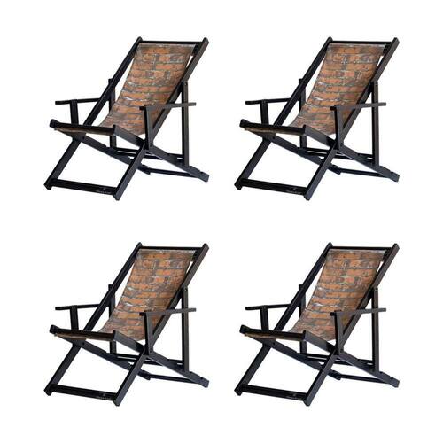 Kit 4 Espreguiçadeiras Dobrável Black Cb-tijolo 4 ESPREGUIÇADEIRAS ENVERNIZADAS BLACK C/BSabe aquele final de tarde que você tanto espera para tirar um descanso merecido? Ou aquela viagem para a praia programada a meses com a família? Pois é, nossas cadeiras espreguiçadeira serve exatamente para esses momentos, com várias opções de cores, os tecidos além de charmosos são hidro-repelentes e se adequam a qualquer ambiente, facilmente removíveis para higienização.Estrutura 100% de madeira maciça e verniz especial, que garante sua qualidade e durabilidade, a espreguiçadeira é totalmente dobrável e reclinável (4 posições de ângulo), com descanso para braço, sendo possível montar invertida sem o encosto de braço, perfeita para seu lazer em todos os ambientes, seja ele externo ou interno, esse é o item que definitivamente não pode faltar na vida de quem de fato, quer aproveitar bons momentos! FICHA TÉCNICA DO PRODUTO:04 Níveis de Regulagem de Altura;Tecido Reforçado;Fabricada em Madeira Maciça Pinus;Peso aproximado: 7,5 Kg;Suporta aproximadamente 120 kg;Cor da Madeira: Preta Dimensões aproximadas do Produto:Altura 1: 69 cm;Altura 2: 82 cm;Altura 3: 91 cm;Altura 4: 100 cm;Profundidade: 105 cm. Dimensão aproximada total:Comprimento: 135 cm;Largura: 66 cm; Informações Adicionais:Garantia: 90 dias contra defeitos de fabricação.Acompanha 4 cadeiras Obs. A cor pode variar da foto conforme a tonalidade da madeira e iluminação.. !! Marca: Brasil Móveis