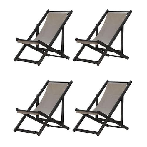 Kit 4 Espreguiçadeiras Dobrável Black Sb-bege 4 ESPREGUIÇADEIRAS ENVERNIZADAS BLACK S/BSabe aquele final de tarde que você tanto espera para tirar um descanso merecido? Ou aquela viagem para a praia programada a meses com a família? Pois é, nossas cadeiras espreguiçadeira serve exatamente para esses momentos, com várias opções de cores, os tecidos além de charmosos são hidro-repelentes e se adequam a qualquer ambiente, facilmente removíveis para higienização.Estrutura 100% de madeira maciça e verniz especial, que garante sua qualidade e durabilidade, a espreguiçadeira é totalmente dobrável e reclinável (4 posições de ângulo), perfeita para seu lazer em todos os ambientes, seja ele externo ou interno, esse é o item que definitivamente não pode faltar na vida de quem de fato, quer aproveitar bons momentos! FICHA TÉCNICA DO PRODUTO:04 Níveis de Regulagem de Altura;Tecido Reforçado;Fabricada em Madeira Maciça Pinus;Peso aproximado: 7,5 Kg;Suporta aproximadamente 120 kg;Cor da Madeira: PretaAcabamento: Envernizada Dimensões aproximadas do Produto:Altura 1: 69 cm;Altura 2: 82 cm;Altura 3: 91 cm;Altura 4: 100 cm;Profundidade: 105 cm. Dimensão aproximada total:Comprimento: 135 cm;Largura: 60 cm; Informações Adicionais:Garantia: 90 dias contra defeitos de fabricação.Acompanha 4 cadeiras Obs. A cor pode variar da foto conforme a tonalidade da madeira e iluminação..