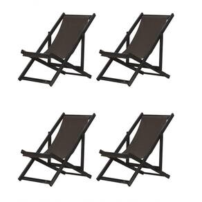 Kit 4 Espreguiçadeiras Dobrável Black Sb-marrom 4 ESPREGUIÇADEIRAS ENVERNIZADAS BLACK S/BSabe aquele final de tarde que você tanto espera para tirar um descanso merecido? Ou aquela viagem para a praia programada a meses com a família? Pois é, nossas cadeiras espreguiçadeira serve exatamente para esses momentos, com várias opções de cores, os tecidos além de charmosos são hidro-repelentes e se adequam a qualquer ambiente, facilmente removíveis para higienização.Estrutura 100% de madeira maciça e verniz especial, que garante sua qualidade e durabilidade, a espreguiçadeira é totalmente dobrável e reclinável (4 posições de ângulo), perfeita para seu lazer em todos os ambientes, seja ele externo ou interno, esse é o item que definitivamente não pode faltar na vida de quem de fato, quer aproveitar bons momentos! FICHA TÉCNICA DO PRODUTO:04 Níveis de Regulagem de Altura;Tecido Reforçado;Fabricada em Madeira Maciça Pinus;Peso aproximado: 7,5 Kg;Suporta aproximadamente 120 kg;Cor da Madeira: PretaAcabamento: Envernizada Dimensões aproximadas do Produto:Altura 1: 69 cm;Altura 2: 82 cm;Altura 3: 91 cm;Altura 4: 100 cm;Profundidade: 105 cm. Dimensão aproximada total:Comprimento: 135 cm;Largura: 60 cm; Informações Adicionais:Garantia: 90 dias contra defeitos de fabricação.Acompanha 4 cadeiras Obs. A cor pode variar da foto conforme a tonalidade da madeira e iluminação..