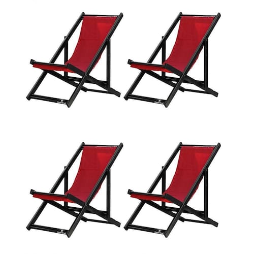 Kit 4 Espreguiçadeiras Dobrável Black Sb-vermelho 4 ESPREGUIÇADEIRAS ENVERNIZADAS BLACK S/BSabe aquele final de tarde que você tanto espera para tirar um descanso merecido? Ou aquela viagem para a praia programada a meses com a família? Pois é, nossas cadeiras espreguiçadeira serve exatamente para esses momentos, com várias opções de cores, os tecidos além de charmosos são hidro-repelentes e se adequam a qualquer ambiente, facilmente removíveis para higienização.Estrutura 100% de madeira maciça e verniz especial, que garante sua qualidade e durabilidade, a espreguiçadeira é totalmente dobrável e reclinável (4 posições de ângulo), perfeita para seu lazer em todos os ambientes, seja ele externo ou interno, esse é o item que definitivamente não pode faltar na vida de quem de fato, quer aproveitar bons momentos! FICHA TÉCNICA DO PRODUTO:04 Níveis de Regulagem de Altura;Tecido Reforçado;Fabricada em Madeira Maciça Pinus;Peso aproximado: 7,5 Kg;Suporta aproximadamente 120 kg;Cor da Madeira: PretaAcabamento: Envernizada Dimensões aproximadas do Produto:Altura 1: 69 cm;Altura 2: 82 cm;Altura 3: 91 cm;Altura 4: 100 cm;Profundidade: 105 cm. Dimensão aproximada total:Comprimento: 135 cm;Largura: 60 cm; Informações Adicionais:Garantia: 90 dias contra defeitos de fabricação.Acompanha 4 cadeiras Obs. A cor pode variar da foto conforme a tonalidade da madeira e iluminação..