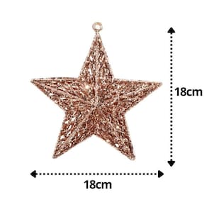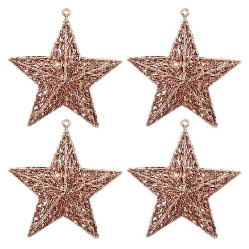Kit 4 Estrelas Decorativa Natal Gliter Vazado Rosê Gold 18cm