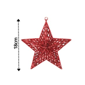 - 04 Unidades Estrela 3D Glitter Vazada Vermelha (18cm) – Com Furo para Pendurar