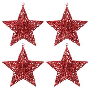 Kit 4 Estrelas Glitter Vazado Vermelha Natal Gold 3D 18cm