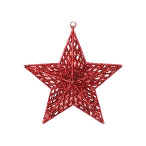- 04 Unidades Estrela 3D Glitter Vazada Vermelha (18cm) – Com Furo para Pendurar