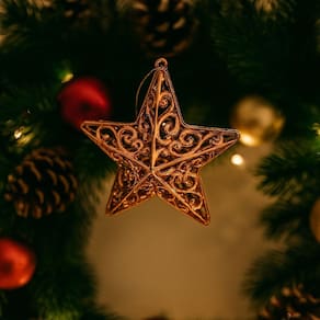 Kit 4 Estrelas Vazadas Tridimensionais Arabesco Bronze Metalizado 10,5cm – Enfeite Natalino com Cordão