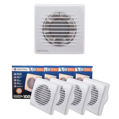 Kit 4 Exaustor Silencioso para Banheiro 10cm Grade Insetos Kit 4 Exaustor Silencioso para Banheiro 10cm Grade Insetos Bivolt 110V/220V de Teto ou Parede