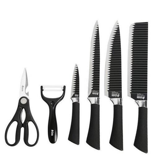 Jogo 4 Facas + Tesoura + Descascador Cabo Preto Ponta O Jogo 4 Facas + Tesoura + Descascador Cabo Preto Ponta é perfeito para quem busca um conjunto completo de utensílios de alta qualidade para a cozinha. Composto por 4 facas cutelo, do chef, pontuda e pequena de serviço , uma tesoura e um descascador de legumes, este conjunto é indispensável para chefs profissionais e amantes da culinária. As facas deste conjunto são projetadas para atender às diferentes necessidades na cozinha. O cutelo é ideal para cortar ossos e carnes mais duras, enquanto a faca do chef é perfeita para cortar, fatiar e picar alimentos. A faca pontuda é ótima para cortar frutas e vegetais, e a faca pequena de serviço é perfeita para tarefas mais delicadas. Além das facas, o conjunto inclui uma tesoura que pode ser Utilizado para cortar ervas, carnes e abrir embalagens. O descascador de legumes facilita a remoção da casca de frutas e vegetais, tornando o processo mais rápido e eficiente. O design do cabo preto e da lâmina preta ondulada confere um visual moderno e elegante ao conjunto. Além disso, o cabo oferece uma aderência confortável e segura durante o uso, garantindo maior precisão e controle. Este conjunto é produzido por uma marca reconhecida por sua excelência em qualidade e durabilidade. Com anos de experiência no mercado, a marca se destaca pela inovação e pelo compromisso em oferecer produtos de alto desempenho. Adquira agora o Jogo 4 Facas + Tesoura + Descascador Cabo Preto Ponta e tenha todas as ferramentas necessárias para preparar suas refeições com facilidade e precisão. Eleve suas habilidades na cozinha com este conjunto completo e de alta qualidade. Marca: Sa, Songle, Nakazaki Ou Siga It-Blue Ean: 7797793608218