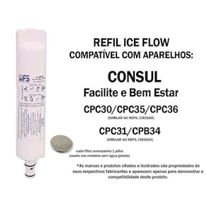 Kit 4 filtro refil consul facilite bem estar compativel cix01 cix06 cpc31 cpb34 cpc30 cpc35 Kit com 4 filtros Filtro refil para os purificadores de água consul Compatível com todos os modelos: Facilite e bem estar Cpc30 / cpc35 / cpc36 ao refil cix01ax Cpc31 / cpb34 ao refil cix06ax Cada filtro acompanha uma bateria nova para garantir o bom funcionamento do sistema de alerta de troca do filtro refil somente os modelos cpc30 e cpc 31 utilizam a bateria, pois não são ligados na tomada . Fazer a troca do filtro é realmente muito simples e leva cerca de 3 minutos. Junto dos filtros nós enviamos também nosso manual exclusivo com as instruções passo a passo de como fazer a troca. Nas instruções enviadas nós informamos como reiniciar a contagem da vida útil do refil, mas para saber como é fácil, siga esses passos: - modelo bem estar: pressione a tecla vida refil ao lado da bateria por 3 segundos, até ouvir o aviso sonoro confirmando a troca. - modelo facilite: retire o cabo elétrico da tomada, após alguns segundos ligue o cabo elétrico na tomada e pressione os botões de água gelada e natural simultaneamente por cerca de 5 segundos até ouvir o aviso sonoro confirmando a troca. O filtro remove o cloro da água, elimina sabores, retém partículas de sujeira, barro, ferrugem, eleva o ph, além de eliminar 96% de bactérias e micróbios. As marcas e produtos citados e ilustrados são propriedades de seus respectivos fabricantes e aparecem apenas para demonstrar a compatibilidade deste produto. --------------------------------------------------------------------------- Fabricante/marca do refil: wfs Eficiência da retenção de partículas: classe iii Eficiência da redução de cloro livre: aprovado Eficácia anti microbiana: aprovado eficiência bacteriológica: não se aplica Produto de acordo com a norma abnt nbt 16098:2012. Elemento filtrando destinado ao uso em água que atenda a portaria n 2.914 do ministério da saúde. Marca: Não Informado