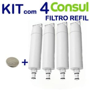 Kit 4 filtro refil consul para purificador de água cpc34ab Compatível com toda linha de purificadores de água consul (cpc30ab, cpc30af, cpc35ab, cpc35af, cpc36ab, cpc36af, cpc34as, cpc34af, cpc34ab, cpc31af e cpc31ab) Enviamos para todo brasil refil purificador de água compatível com produto consul bem estar e facilite refil do purificador de água consul com tecnologia exclusiva, que através de diferentes estágios de filtragem e do carvão ativado, garante que sua água esteja sempre pura, livre de qualquer cor, sabor e até mesmo cloro ele é super fácil de trocar e instalar. Você mesmo pode fazer sem a ajuda de um técnico evitando gastos adicionais e dores de cabeça com agendamentos. É só girar e trocar acompanha bateria para garantir o bom funcionamento do sistema de alerta de troca do refil. Não esqueça nunca de trocar o refil do seu purificador de água consul. Assim sua água estará sempre pura e sua familia protegida. Composição efps dolomita e carvão ativado com prata pressão mínima 2,5 mca (25 kpa) pressão máxima 70 mca (700 kpa) vazão 50/60 litros/hora eficiencia da retenção de partículas classe 3 eficiência da redução de cloro livre classe 1 eficiência bacteriológica se aplica índice de dolomita 100% Sem caixinha e tipografia. As marcas citadas são propriedades de seus respectivos fabricantes e aparecem apenas para demonstrar a compatibilidade deste produto.