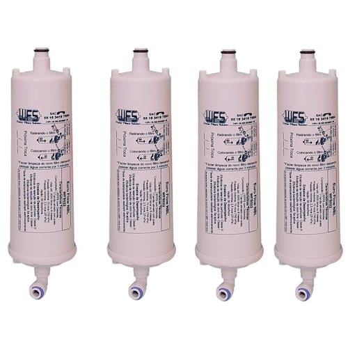 Kit com 4 filtros refil compatíveis com purificadores de água Europa (modelos Noblesse, Da Vinci, CTA). Remove cloro, elimina sabores, retém partículas de sujeira, barro e ferrugem, eleva o pH e elimina 96% de bactérias e micróbios. Possui proteção contra bactérias. Eficiência da retenção de partículas: Classe III. Eficiência da redução de Cloro livre: Aprovado. Eficácia Anti Microbiana: Aprovado. Produto em conformidade com a norma ABNT NBT 16098:2012 e portaria N 2.914 do Ministério da Saúde.Tipo