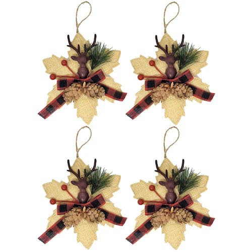 Transforme seu lar em um verdadeiro refúgio natalino com nosso charmoso Kit de Flores Bico de Papagaio Pendentes. Com tecido Bege palha e encantadores detalhes de Rena e Pinhas, este conjunto de 4 unidades de 14cm cada irá adicionar um toque mágico à sua decoração de Natal.
