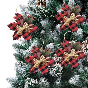 Elegância Natalina: Cada flor em tecido vermelho xadrez traz uma sensação de calor e aconchego para sua decoração.