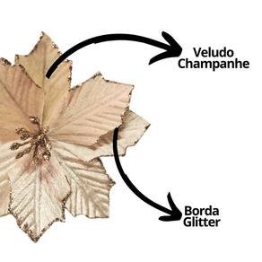 Decore sua casa com requinte e traga o verdadeiro espírito natalino com essa flor bico de papagaio veludo champanhe glitter 13cm, o detalhe que fará toda a diferença no seu ambiente festivo.