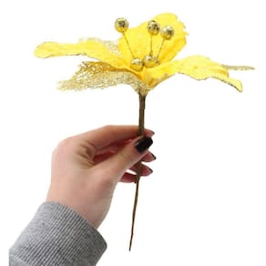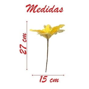 Kit 4 Flores Com Cabo Artificial Decoração De Natal Com Glitter 27cm -