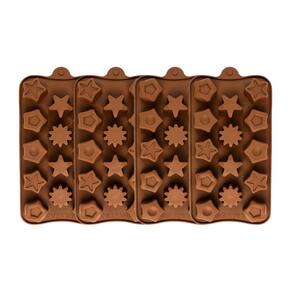 Características Principais: - Temperatura máxima suportada: 230 C; - Temperatura miníma suportada: -40 C; - Fabrica chocolates, gelatinas, gelos e velas ; - Formato variado de estrelas; - Não quebram ao serem retirados da forma; - Não gruda; - Cor: Marrom.