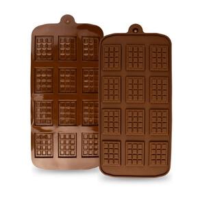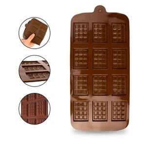 Características Principais: - Pose ser utilizada em altas e baixas temperaturas; - Fabrica chocolates ou gelo; - Formato de 12 mini barras de chocolate; - Não quebram ao serem retirados da forma; - Não gruda; - Cor: Marrom.
