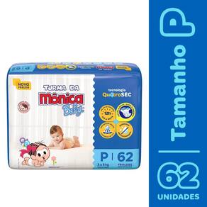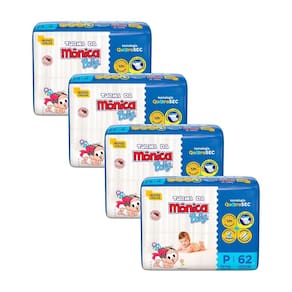 Kit Contém: 4 Pacotes de Fraldas Turma da Mônica Baby Mega P com 62un cada