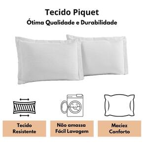 Cor: Branco É uma opção elegante e clássica para decorar a cama. O Piquet é um tecido de algodão com textura em alto relevo, confere um visual sofisticado, traz a maciez e o conforto, além de um toque de beleza e elegância na decoração do ambiente.