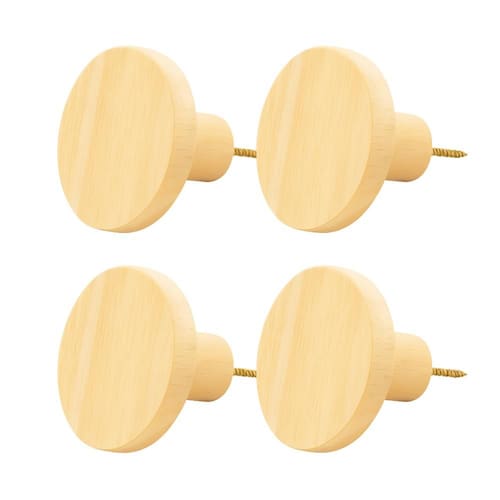 Kit 4 Ganchos de Madeira Pinus Cabideiro de Parede Redondo Bolsas Mochilas Casacos.