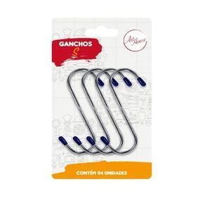 4 Ganchos S de Metal Multiuso Organizador Suporta Até 5kg Os ganchos servem para você usar na sua barra de cozinha, roupeiro, lavanderia e pendurar mais utensílios. Encaixáveis em barras achatadas ou circulares de até 2,5 cm de circunferência.
