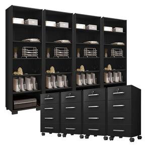 Kit 4 Gaveteiros para Escritório Gávea com Chave e 4 Livreiros Office Preto Fosco Móveis Leão