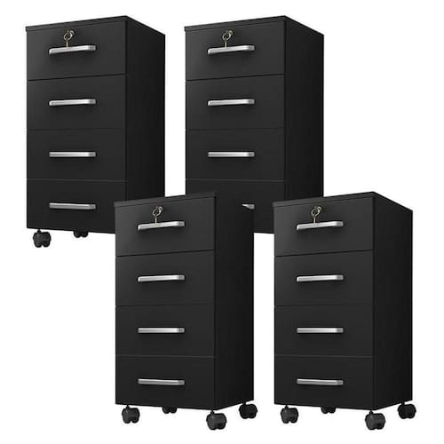Kit 4 Gaveteiros para Escritório Gávea com Chave Preto Fosco Móveis Leão