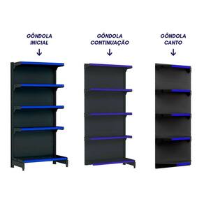 Nosso kit com 4 gôndolas de parede + canto na cor preta é ideal para armazenamento e exposição de produtos em supermercados, mercearias, farmácias, lojas de utilidades, materiais de construção, agropecuárias, e muito mais, variando de acordo com a capacidade de peso de cada modelo.com 2,02m de altura, esta gôndola proporciona uma exibição eficiente dos produtos, maximizando o espaço vertical da sua loja e permitindo uma organização prática e acessível.as gôndolas possuem uma capacidade de 40kg por bandeja. com pintura eletrostática epóxi, antibacteriana, uniforme e resistente.possui bandejas com inclinação em 3 posições e bandejas reguláveis na coluna a cada 25mm, o que permite adição de bandejas extras. a bandeja é construida em chapa 26 (espessura de 0,50mm). fundo da bandeja quadrado para melhor exposição.pés com regulagem de altura, colunas dupladas e tratamento especial da superfície.a gôndola é prática e fácil de montar, com sistema de encaixe sem utilização de parafusos. você pode instalar suas gôndolas rapidamente, sem complicações, permitindo que você comece a exibir seus produtos em pouco tempo.todas as nossas gôndolas possuem qualidade, resistência e durabilidade garantidas pelo uso de matérias-primas de alto padrão, processos produtivos com a mais atual tecnologia e um cuidado especial em cada etapa.modernas e elegantes, nossas gôndolas são projetadas para destacar seus produtos e criar um ambiente agradável de compras para seus clientes, incentivando a exploração e aumentando as vendas.aproveite ao máximo cada centímetro disponível em sua loja com nossas gôndolas projetadas para maximizar o espaço de exposição, permitindo uma ampla variedade de produtos em um layout eficiente.- capacidade de 40kg por bandeja;- colunas dupladas: com sistema de encaixe, sem utilização de parafusos;- tecnologia exclusiva de apoio sgl;- pés reforçados e com regulagem;- bandejas inclináveis: oferece 3 opções para melhor exposição;- bandejas reguláveis a cada 25mm: possibilidade de adicionar bandejas extras;- reforço na base e bandeja: para maior capacidade de carga e estabilidade;- bandeja é construida em chapa 26;- ponteira da coluna: maior proteção e durabilidade.> o kit contém- 01x gôndola new premium 2,02m preta canto- 02x gôndola new premium 2,02m preta parede inicial- 02x gôndola new premium 2,02m preta parede continuação> especificaçõesgôndola cantomodelo: gôndola cantolinha: fit 40altura: 2,02mcor: pretaquantidade de bandeja: 5peso suportado por bandeja: 40kgchapa: 26gôndola parede inicialmodelo: gôndola de parede iniciallinha: fit 40altura: 2,02mcor: pretaquantidade de bandeja: 5peso suportado por bandeja: 40kgchapa: 26gôndola parede continuaçãomodelo: gôndola de parede continuaçãolinha: fit 40altura: 2,02mcor: pretaquantidade de bandeja: 5peso suportado por bandeja: 40kgchapa: 26> medidas do produtogôndola cantoaltura: 2,02mlargura: 0,69mpeso: 13kglargura da bandeja: 0,69mprofundidade da bandeja base: 0,40mprofundidade das bandejas superiores: 0,30mgôndola parede inicialaltura: 2,02mlargura: 0,96mpeso: 26kglargura da bandeja: 0,90mprofundidade da bandeja base: 0,40mprofundidade das bandejas superiores: 0,30mgôndola parede continuaçãoaltura: 2,02mlargura: 0,93mpeso: 20kglargura da bandeja: 0,90mprofundidade da bandeja base: 0,40mprofundidade das bandejas superiores: 0,30m> garantia- 6 meses> troca e devoluçãomediante termos da política de trocas e devoluções da empresa.