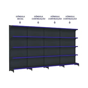 Nosso kit com 4 gôndolas de parede na cor preta é ideal para armazenamento e exposição de produtos em supermercados, mercearias, farmácias, lojas de utilidades, materiais de construção, agropecuárias, e muito mais, variando de acordo com a capacidade de peso de cada modelo.com 2,02m de altura, esta gôndola proporciona uma exibição eficiente dos produtos, maximizando o espaço vertical da sua loja e permitindo uma organização prática e acessível.as gôndolas possuem uma capacidade de 40kg por bandeja. com pintura eletrostática epóxi, antibacteriana, uniforme e resistente.possui bandejas com inclinação em 3 posições e bandejas reguláveis na coluna a cada 25mm, o que permite adição de bandejas extras. a bandeja é construida em chapa 26 (espessura de 0,50mm). fundo da bandeja quadrado para melhor exposição.pés com regulagem de altura, colunas dupladas e tratamento especial da superfície.a gôndola é prática e fácil de montar, com sistema de encaixe sem utilização de parafusos. você pode instalar suas gôndolas rapidamente, sem complicações, permitindo que você comece a exibir seus produtos em pouco tempo.todas as nossas gôndolas possuem qualidade, resistência e durabilidade garantidas pelo uso de matérias-primas de alto padrão, processos produtivos com a mais atual tecnologia e um cuidado especial em cada etapa.modernas e elegantes, nossas gôndolas são projetadas para destacar seus produtos e criar um ambiente agradável de compras para seus clientes, incentivando a exploração e aumentando as vendas.aproveite ao máximo cada centímetro disponível em sua loja com nossas gôndolas projetadas para maximizar o espaço de exposição, permitindo uma ampla variedade de produtos em um layout eficiente.- capacidade de 40kg por bandeja;- colunas dupladas: com sistema de encaixe, sem utilização de parafusos;- tecnologia exclusiva de apoio sgl;- pés reforçados e com regulagem;- bandejas inclináveis: oferece 3 opções para melhor exposição;- bandejas reguláveis a cada 25mm: possibilidade de adicionar bandejas extras;- reforço na base e bandeja: para maior capacidade de carga e estabilidade;- bandeja é construida em chapa 26;- ponteira da coluna: maior proteção e durabilidade.*porta etiquetas: vendidos separadamente, em variadas opções de cores.> o kit contém- 01x gôndola new premium 2,02m preta parede inicial- 03x gôndola new premium 2,02m preta parede continuação> especificaçõesgôndola parede inicialmodelo: gôndola de centro iniciallinha: fit 40altura: 2,02mcor: pretaquantidade de bandeja: 5peso suportado por bandeja: 40kgchapa: 26gôndola parede continuaçãomodelo: gôndola de parede continuaçãolinha: fit 40altura: 2,02mcor: pretaquantidade de bandeja: 5peso suportado por bandeja: 40kgchapa: 26> medidas do produtogôndola parede inicialaltura: 2,02mlargura: 0,96mpeso: 26kglargura da bandeja: 0,90mprofundidade da bandeja base: 0,40mprofundidade das bandejas superiores: 0,30mgôndola parede continuaçãoaltura: 2,02mlargura: 0,93mpeso: 20kglargura da bandeja: 0,90mprofundidade da bandeja base: 0,40mprofundidade das bandejas superiores: 0,30m> garantia- 6 meses> troca e devoluçãomediante termos da política de trocas e devoluções da empresa.