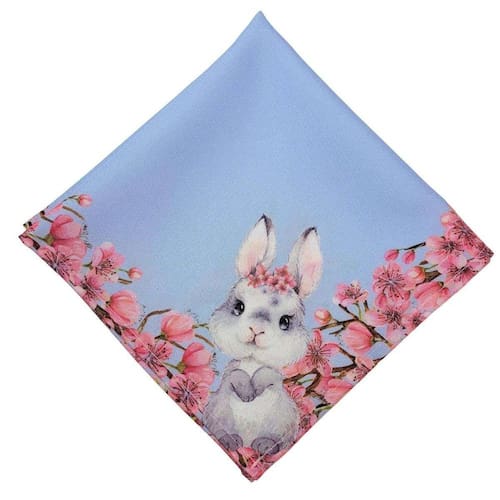 Kit 4 Guardanapo Tecido Oxford Coelho Da Páscoa Cerejeira - Azul