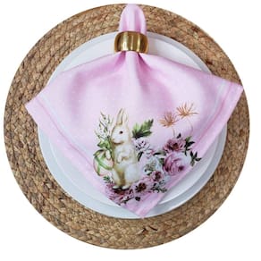 Kit 4 guardanapos de tecido coelhos da páscoa versalles 40cmx40cm Cor: rosa
