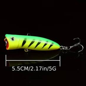 Comprimento: Aproximadamente 5 cm. Peso: Aproximadamente 5g Anzóis: Equipadas com duas garatéias em aço carbono de alta resistência, prontas para o combate. Olhos 3D: Realismo extra para aumentar a atratividade.