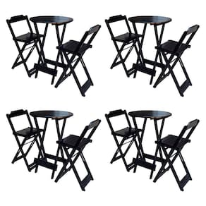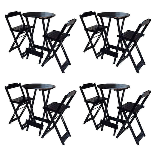 Kit 4 Jogos De Mesa Bistrô De Madeira Com 2 Cadeiras Dobravel Ideal Para Bar E Restaurante Preto - Cor: Preto