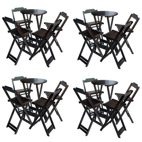 Kit 4 Jogos De Mesa Bistrô De Madeira Com 4 Cadeiras Dobravel Ideal Para Bar E Restaurante Tabaco é ideal para bares, restaurantes, estabelecimentos, áreas de lazer e tambem para sua casa. Feito em madeira maciça, tornando resistentes e duráveis. Seu design permite que seja encaixado em qualquer ambiente, trazendo um toque a mais para seu estabelecimento. Além de sua durabilidade, o que lhe trará conforto para servir seus clientes. Por ser dobrável torna-se mais fácil guardar, manusear e limpar o produto. Atenção: EVITE USAR PRODUTOS ABRASIVOS E QUíMICOS PARA LIMPEZA DO PRODUTO, aconselha-se o uso de pano umedecido para melhor conservação; mantenha o produto fora de chuva e sol constantes. OBS: MDF ULTRA MESA Cor: Tabaco Modelo: Bistrô Dobravel Dimensões: Altura 99cm | Largura 55cm | Profundidade 55cm CADEIRA Cor: Tabaco Modelo: Bistrô Dobravel Dimensões: Altura 100cm | Largura 38cm | Profundidade 37cm