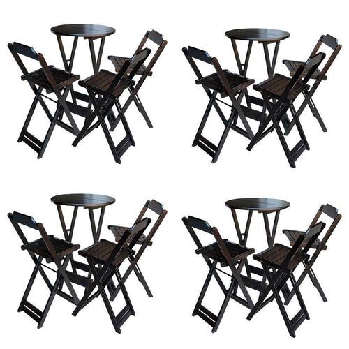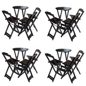 Kit 4 Jogos De Mesa Bistrô De Madeira Dobrável Com 3 Banquetas - Tabaco
