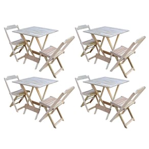 Kit 4 Jogos De Mesa Dobravel Com 2 Cadeiras De Madeira 70x70 - Sem Pintura
