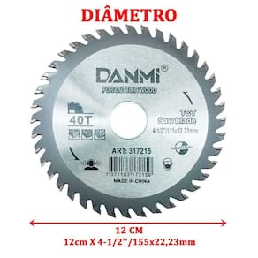Diâmetro: 12cm X 4-1/2''/155x22,23mm; Dentes: 40; Cor: Prata; Material: Metal Duro;
