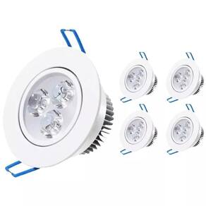 Kit 4 lâmpadas led 3w spot redondo embutir bco quente bivol