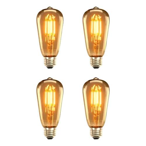 Kit com 4 lâmpadas homefy filamento st64 4w 2400k e27 As lâmpadas de filamento led dão um toque muito especial ao ambiente, quando falamos de decoração. Este tipo de lâmpada forma um desenho de linhas com seu filamento exposto dentro do bulbo de vidro, o que causa um efeito fantástico. A recomendação é utilizá-la com pendentes abertos para que toda sua beleza fique a mostra. Informações técnicas: Altura: 141mm Kit com 4 unidades Largura: 64mm Tipo filamento de led Vidro cristal âmbar envelhecido Potência 4w Bivolt 110v 220v Base bocal e-27 Cor da luz branco quente 2200k Vida útil de 50.000h Fluxo luminoso 360lm Ângulo de abertura 360 Não dimerizável Material bulbo em vidro e base em metal Uso interno Baixo consumo de energia. Utiliza um eficiente controlador de corrente constante. Economia de energia de 86% em relação à lâmpada incandescente. Acendimento instantâneo e alta qualidade de luz. Ecologicamente correta - não contém mercúrio e Cinza. Não emite uv/iv e gera menos calor. Cuidados e restrições: Evite usar em áreas de altas temperaturas maiores que 55 graus celsius Não é adequado para interruptores reguláveis, ou seja, não é dimerizável. O uso em luminárias fechadas pode diminuir a vida útil da lâmpada. Desligue a energia ao remover ou instalar a lâmpada. Sem flash estroboscópio e oscilação para proteger os olhos. A lâmpada possui um condutor termal plástico que dissipa o calor; desempenho mais seguro e isolador portátil. Utilize em ambientes domésticos, comerciais, lojas e outros. Marca: Não Informado