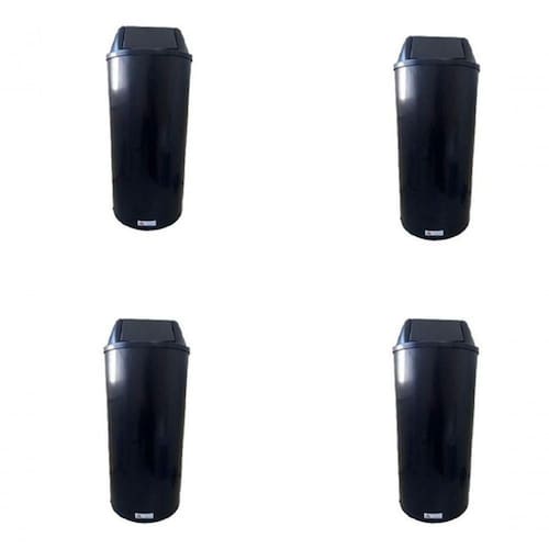Kit 4 Lixeiras Alto com Tampa Vai-vem 22L Plástico Abertura Basculante para Condomínio e Coleta Seletiva Preto