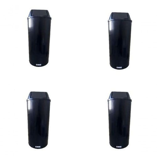 Kit 4 Lixeiras Modelo Cesto Alto 22L Plástico Abertura Basculante para Condomínio e Comércio Preto