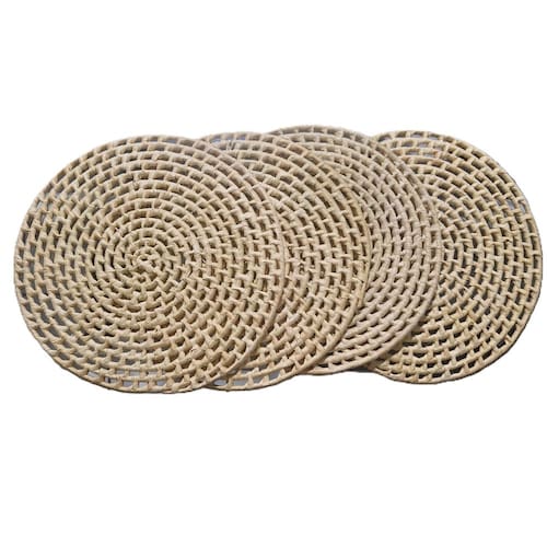 Kit 4 Lugares Americanos Palha Redondo Porta Pratos tipo Sousplat