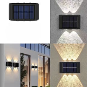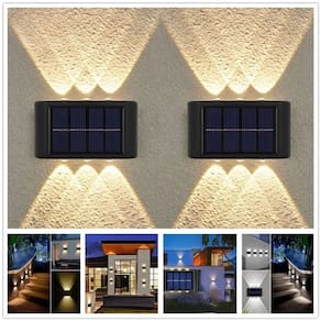 Lâmpada de parede para casa Solar Solar ao ar livre, com design de iluminação para cima e para baixo, criando luz atraente e sombra. Sensor inteligente de mudanças de luz, alterne automaticamente as luzes ligadas e desligadas. Carregado totalmente em 6-8 horas em sol cheio. Pode ser utilizado por 6-8 horas, recarrega automaticamente o dia todo e acende automaticamente à noite. Ip65 à prova d'água ao ar livre, chuva e proteção relâmpago, fonte de alimentação ininterrupta em dias chuvosos, iluminação normal.