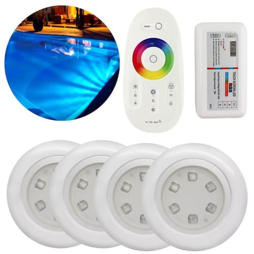 4 Luminárias Luzes Led 12V De Piscina RGB 9W Com Controlador Módulo Central + Controle Touch Screen + Fonte De Energia As Luminárias com Luz Led RGB submersíveis, produto de fácil instalação, são ideais para iluminação decorativa em ambientes aquáticos, como: piscinas, chafarizes, aquários, cascatas, fontes de águas deixando seu ambiente mais belo, agradável e colorido. Especificações das Luminárias:- Materiais do produto: ABS- Cor do produto: Branco- Quantidade de Leds: 6 Leds- Cores da iluminação: RGB- Voltagem: DC-12v Volts - Potência da Luz: 9W- Classificação: IP68 a prova d'água- medidas da luminária: Diâmetro: 9,5cm x Profundidade: 3cm x Fiação: 93cm- Forma de fixação: Parafusos Não é de rosca Especificações do controle:- Materiais do produto: ABS- Tipo: Sem fio Touch Screen - Distância máxima do controle: 30 metros- Frequência do controle: 2,4ghz RF- Funciona com 2 pilhas AAA Não inclusas - Medidas do controle: 110mm x 53mm x 20mm- Com o controle RGB você pode controlar a cor, a intensidade e os modos da iluminação, criando ambientes surpreendentes e coloridos. Especificações do controlador Central Módulo :- Materiais do produto: ABS- Forma de controle: RGB 3 canais - Corrente máxima por canal: 6A- Quantidade de programação: 20 tipos- Controlador RGB 4 vias - Tensão de trabalho: 12V/24V - Medidas do controle: 85mm x 45mm x 23mm Instruções e recomendações de uso:- Procure um profissional especializado para que planeje e execute a instalação com segurança.- Forma de fixação: As luminárias deverão ser fixadas através de 2 Parafusos Inclusos no produto - ATENÇÃO: A luminária não deverá ser ligada diretamente na energia elétrica 110/220v sem uma fonte de 12V instalada para não danificar o produto. - Peso total do produto: Aproximadamente 760 gramas o Kit Itens inclusos:- 4 Luminárias RGB Submersíveis- 4 Kits de instalações contendo suportes, parafusos e buchas- 1 Central Módulo RGB Controlador - 1 Controle Remoto RF sem fio Touch Screen- 1 Fonte de Alimentação de 12V com 3A