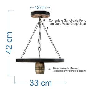 Kit 4 luminárias pendentes de madeira maciça Modelo roda de carroça - 33cm de diâmetro