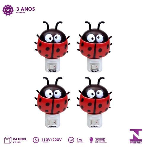 Este Kit contém 4 unidades deLuzes Noturna Luminaria Joaninha 1W Bivolt 3000K