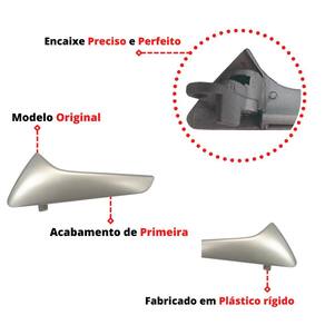 CONTEÚDO DA EMBALAGEM 01 Gatilho interno da Maçaneta – Porta Dianteira – Lado Esquerdo 01 Gatilho interno da Maçaneta – Porta Dianteira – Lado Direito 01 Gatilho interno da Maçaneta – Porta Traseira – Lado Esquerdo 01 Gatilho interno da Maçaneta – Porta Traseira – Lado Direito