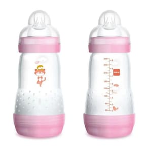 Principais Características: - Tamanhos dos Bicos: 130ml bico tamanho 1 (fluxo lento) +0 meses |160ml bico bico tamanho 1 (fluxo lento) +0 meses | 260ml bico tamanho 2 (fluxo médio) +2 meses | 2 Bicos extras número 3 (fluxo rápido) +4 meses. - Totalmente desmontável facilitando a limpeza - Auto esterilizável em 3 minutos - tecnologia exclusiva MAM: pode ser utilizada mesma fora de casa. - Livre de BPA e BPS - Compatível com diferentes tamanhos de bicos MAM - Cor: Rosa