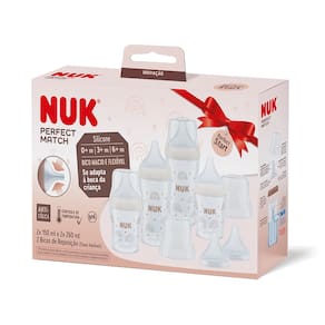 - Conteúdo da Embalagem: Kit com 4 Mamadeiras Perfect Match 2x 150ml Fluxo Lento, 2x 260ml Fluxo Médio + 2 Bicos Tamanho e Fluxo Variável (U) 0m+/ 3m+/ 6m+ Nuk